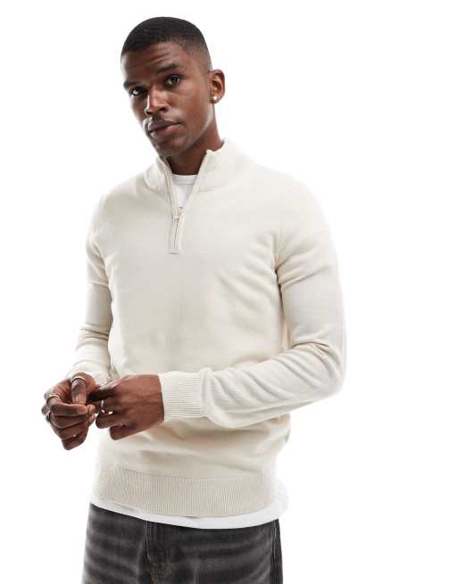 Threadbare soft touch half zip funnel neck jumper in stone