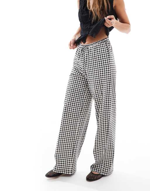 Threadbare straight leg jersey pants with tie waist in black and white gingham print