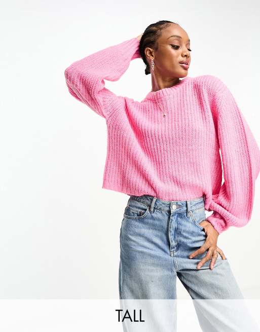 Threadbare Tall Bea crew neck cropped jumper in pink