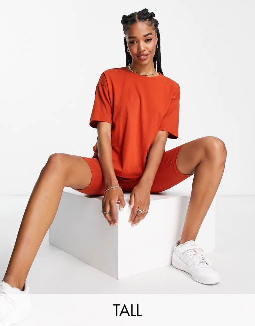Threadbare Tall Chloe shorts and oversized t-shirt in deep orange (part of a set)