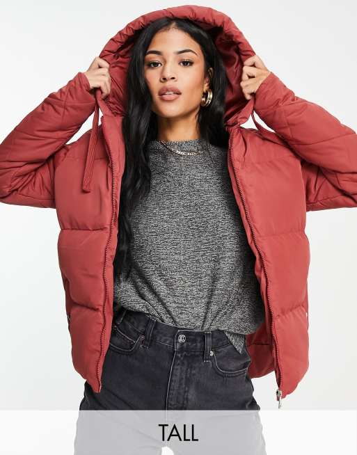 Threadbare Tall Papaya quilted arm puffer jacket in deep red