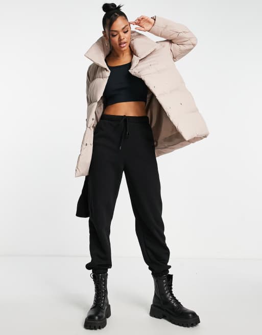 Threadbare Topaz double-breasted puffer jacket with shawl neck in taupe