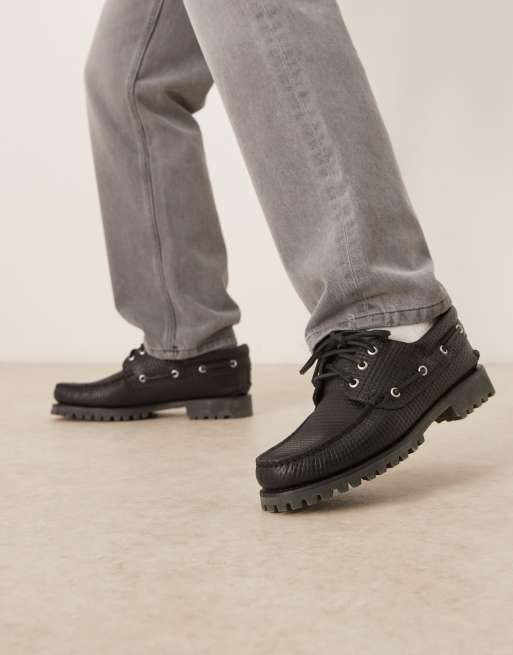 Timberland Authentic 3-eye classic boat shoes in all-over woven black leather
