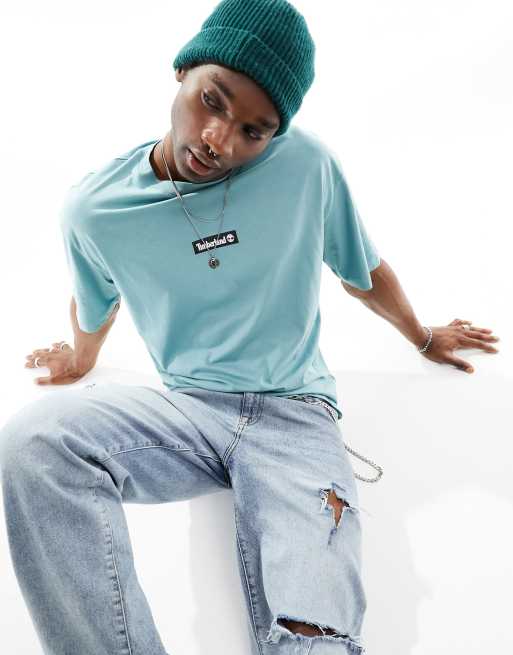 Timberland oversized t-shirt with central logo in blue exclusive to ASOS