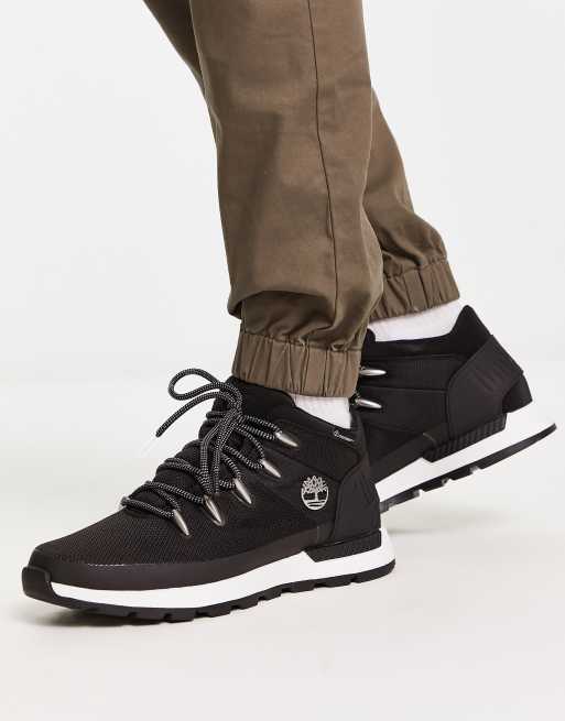 Timberland Sprint Trekker mid boots in black mesh with white logo