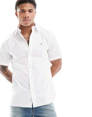 Tommy Hilfiger 1985 flex oxford regular fit short sleeve shirt in white
