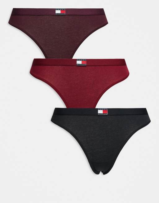 Tommy Hilfiger 3 pack flag detail lingerie thong in black/burgundy/red
