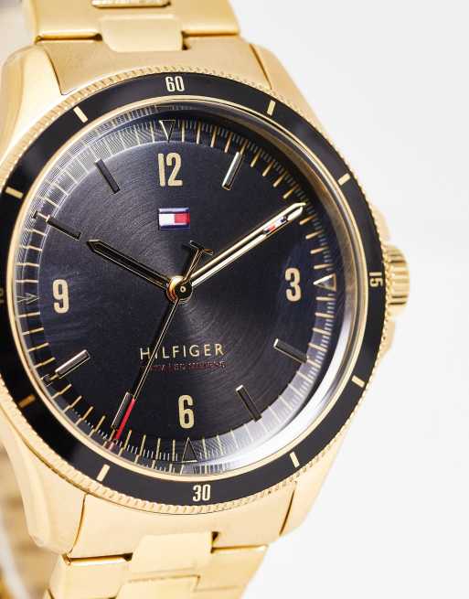 Tommy Hilfiger black dial bracelet watch in gold 1791903