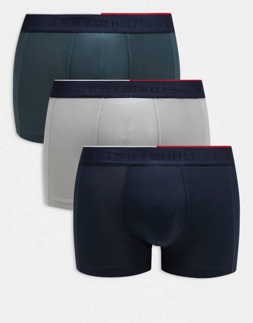 Tommy Hilfiger Everyday Micro 3 pack trunks in grey/blue