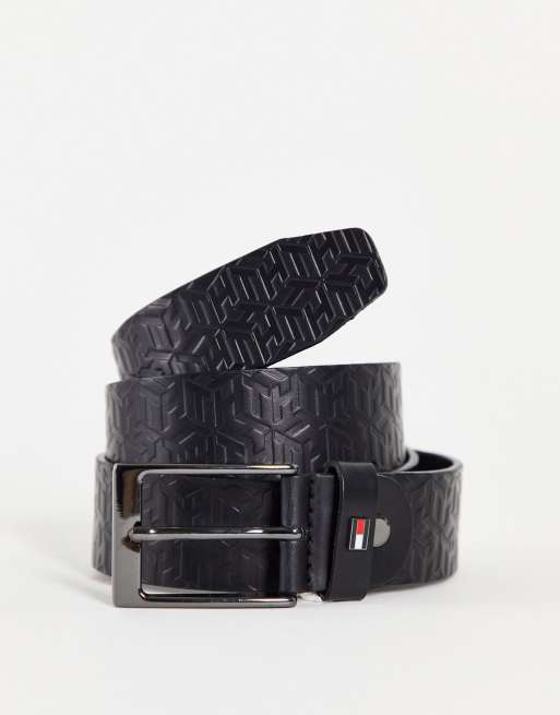 Tommy Hilfiger Layton monogram leather belt with flag logo in black