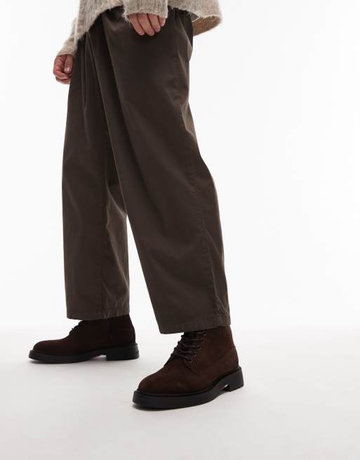 Tommy Hilfiger leather suede comfort lace up boots in brown