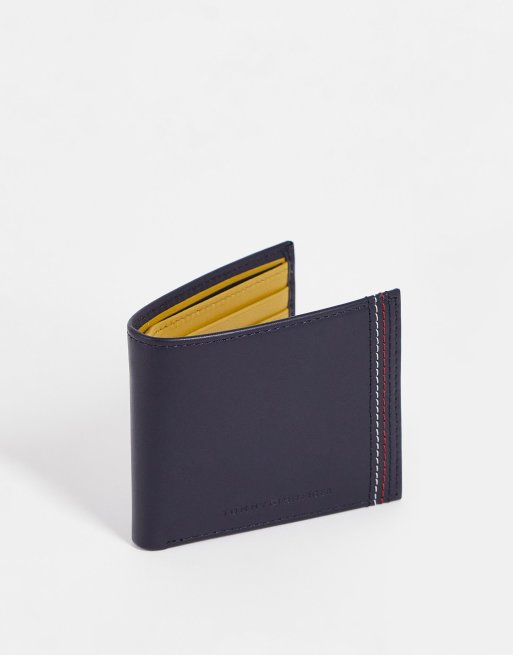 Tommy Hilfiger leather wallet in navy with stripe