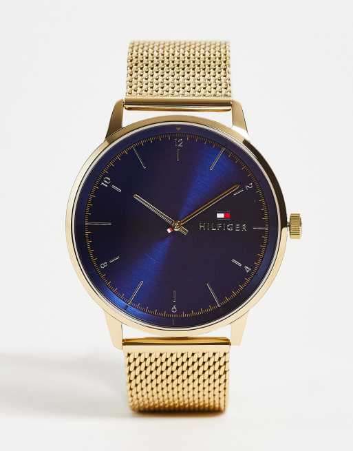 Tommy Hilfiger mesh watch with blue dial in gold 1791877