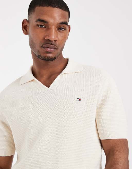 Tommy Hilfiger textured v-neck collared sweater top in white