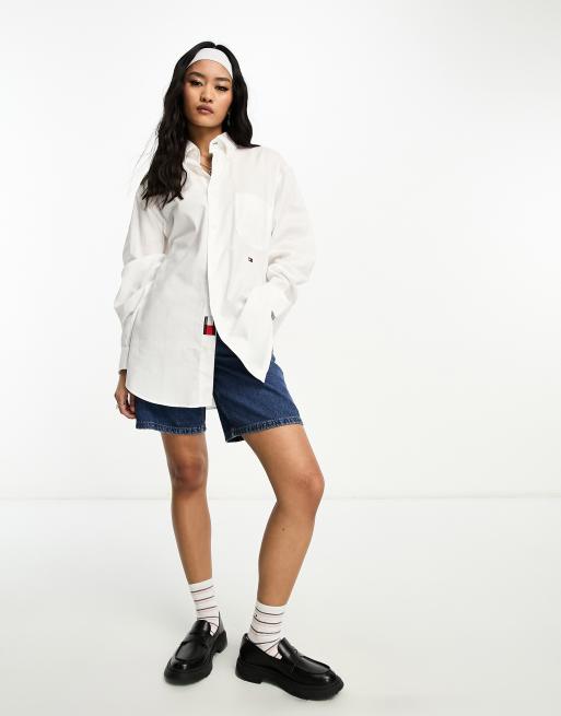 Tommy Hilfiger x Shawn Mendes flag logo long sleeve oxford shirt in white