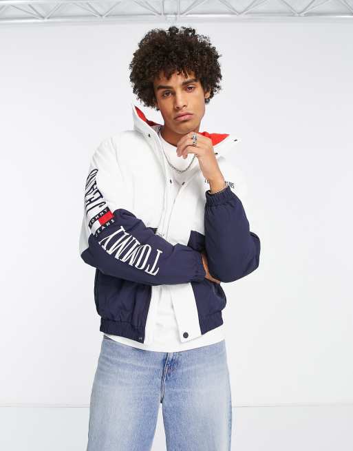 Tommy Jeans archive sleeve logo colourblock jacket in navy