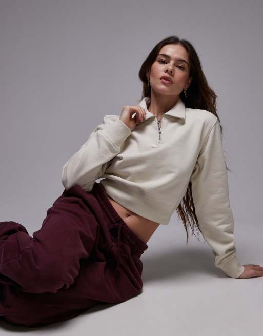 Tommy Jeans cropped 1/4 zip sweatshirt in off white