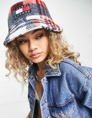 Tommy Jeans flag logo bucket hat in check print