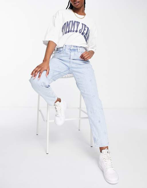 Tommy Jeans high rise all over critter mom jeans in mid wash