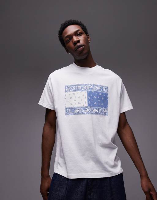 Tommy Jeans large paisley flag t-shirt in white and blue
