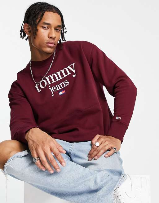 Tommy Jeans modern corp logo sweatshirt in burgundy