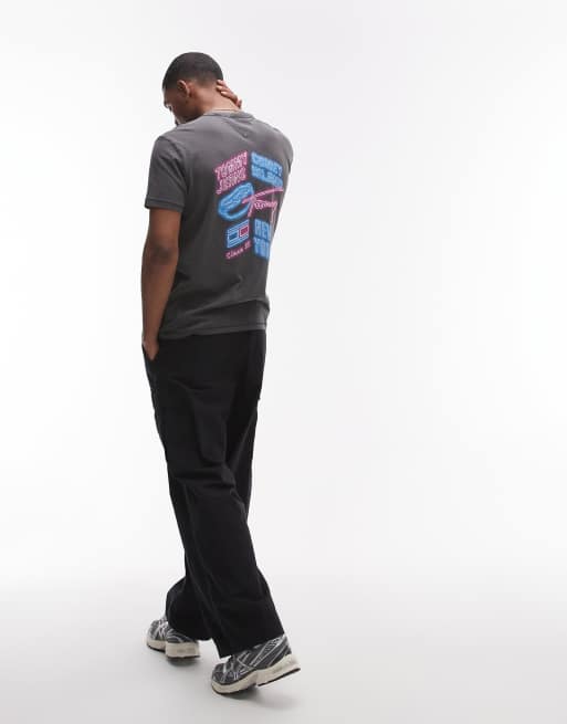 Tommy Jeans neon graphic backprint t-shirt in black