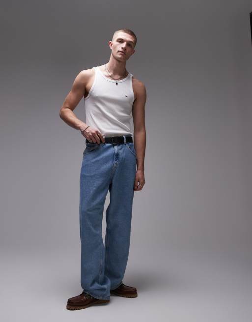 Tommy Jeans small flag ribbed singlet top in white