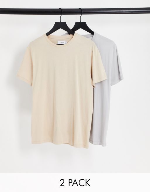 Topman 2-pack classic T-shirt in stone and light grey