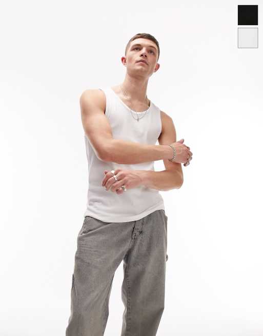 Topman 2 pack rib singlet in black and white
