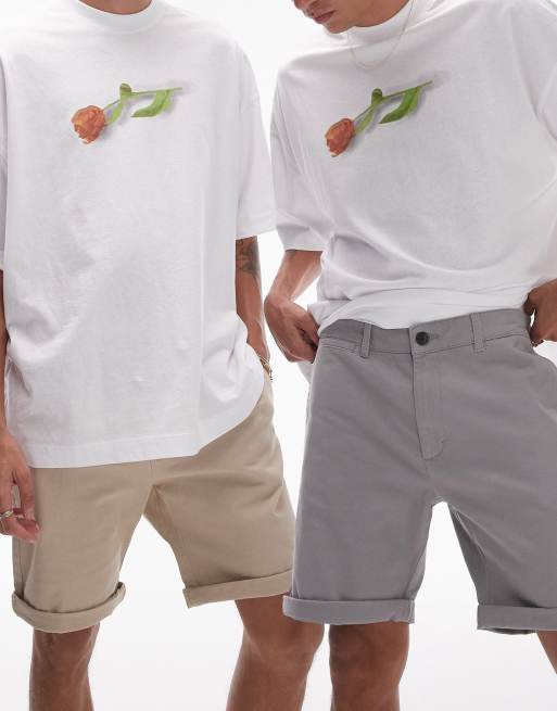 Topman 2 pack skinny chino shorts in grey and stone