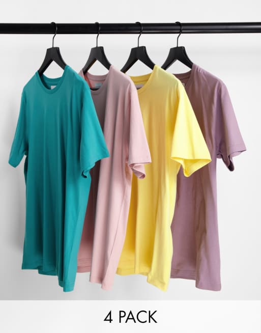 Topman 4 pack classic t-shirt in yellow, lilac, green and pink