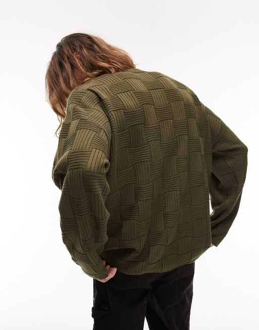 Topman abstract rib knit jumper in khaki