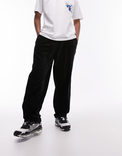 Topman baggy fit ribbed velour trackies in black