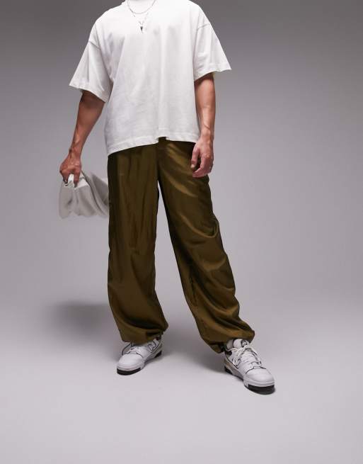 Topman baggy nylon pants in khaki