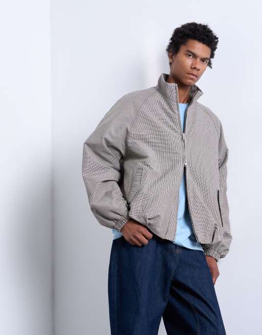 Topman check track jacket in brown