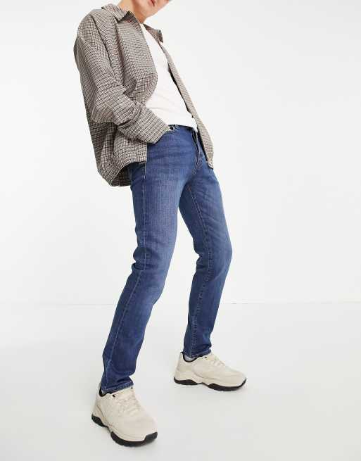 Topman cotton stretch slim jeans in mid wash - MBLUE