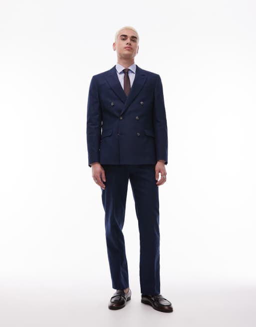 Topman double breasted linen blend suit in navy