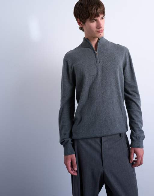 Topman essential knitted 1/4 zip funnel jumper in charcoal