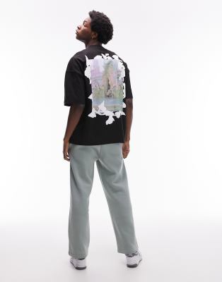 Topman extreme oversized fit t-shirt with front and back fountain embroidery in black