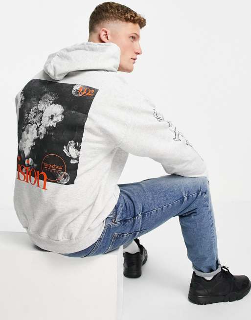 Topman faith print hoodie in grey