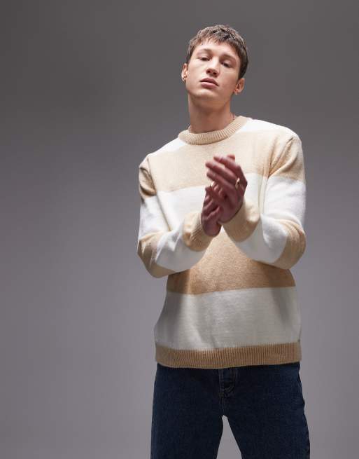 Topman fluffy knitted jumper in ecru and oatmeal