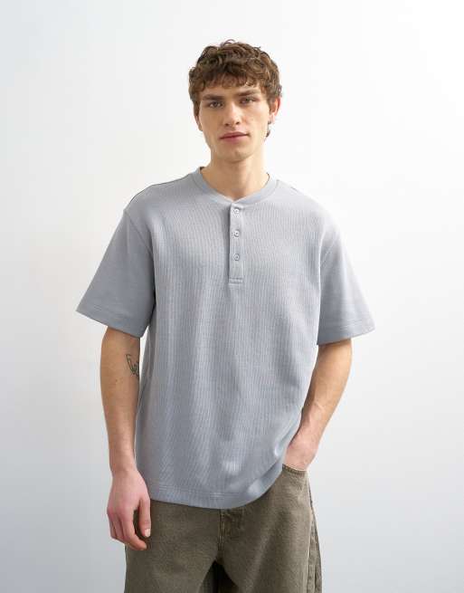 Topman heavyweight relaxed fit henley t-shirt in grey