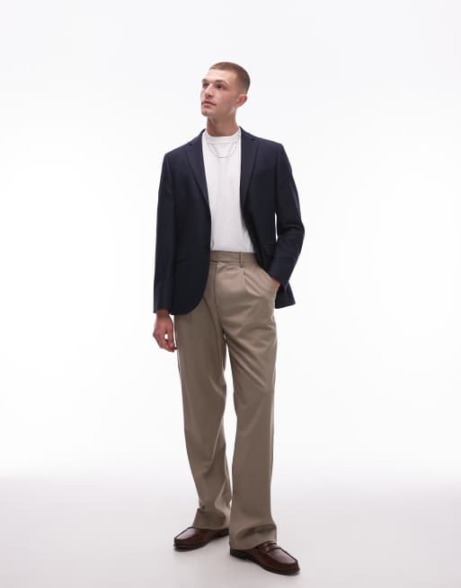 Topman high waist relaxed suit pants in stone