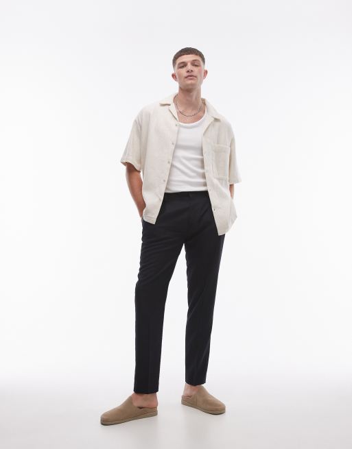 Topman linen blend taper pants in black