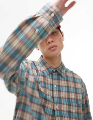 Topman long sleeve extreme oversized fit check shirt in blue
