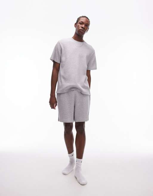 Topman lounge waffle shorts and waffle t-shirt multipack in light grey