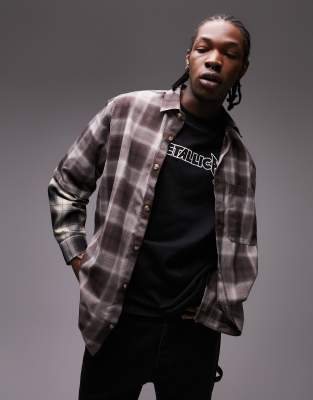 Topman oversized double layer check shirt in brown