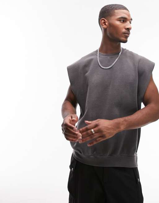 Topman oversized fit cut off sleeve sweatshirt in washed black