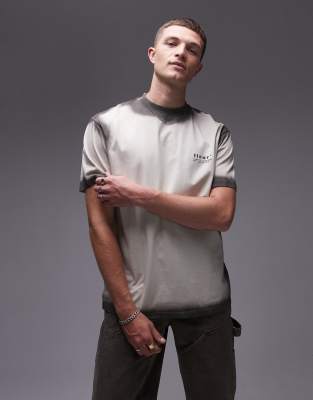 Topman oversized fit fleur oil wash t-shirt in ecru
