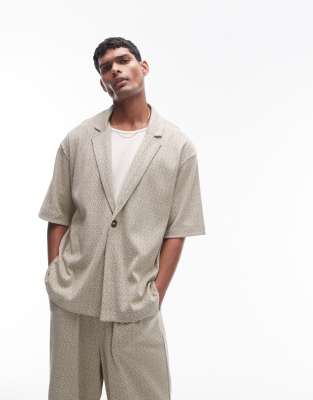 Topman oversized fit jersey wrap polo with textured jacquard in sage